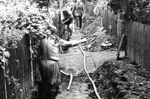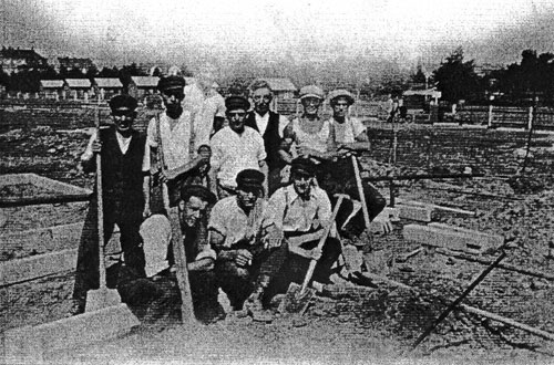 Damit ein einheitliches Gesamtbild entsteht, wurden die Lauben reihenförmig von einer Baufirma errichtet, diese dann für 265 Reichsmark auf Abzahlung an zukünftige Mitglieder des Vereins verkauft. Die gesamte weitere Gestaltung der Gärten, Wege, Wasserleitung, Baulichkeiten usw. mußte in Eigenleistung der Mitglieder erbracht werden. Auch ein kleines Vereinsheim, ein Spielplatz und sogar ein Planschbecken für die Kinder wurden errichtet. Damit war die Gartenanlage recht fortschrittlich und ein Vorzeigeobjekt für die Stadt.
